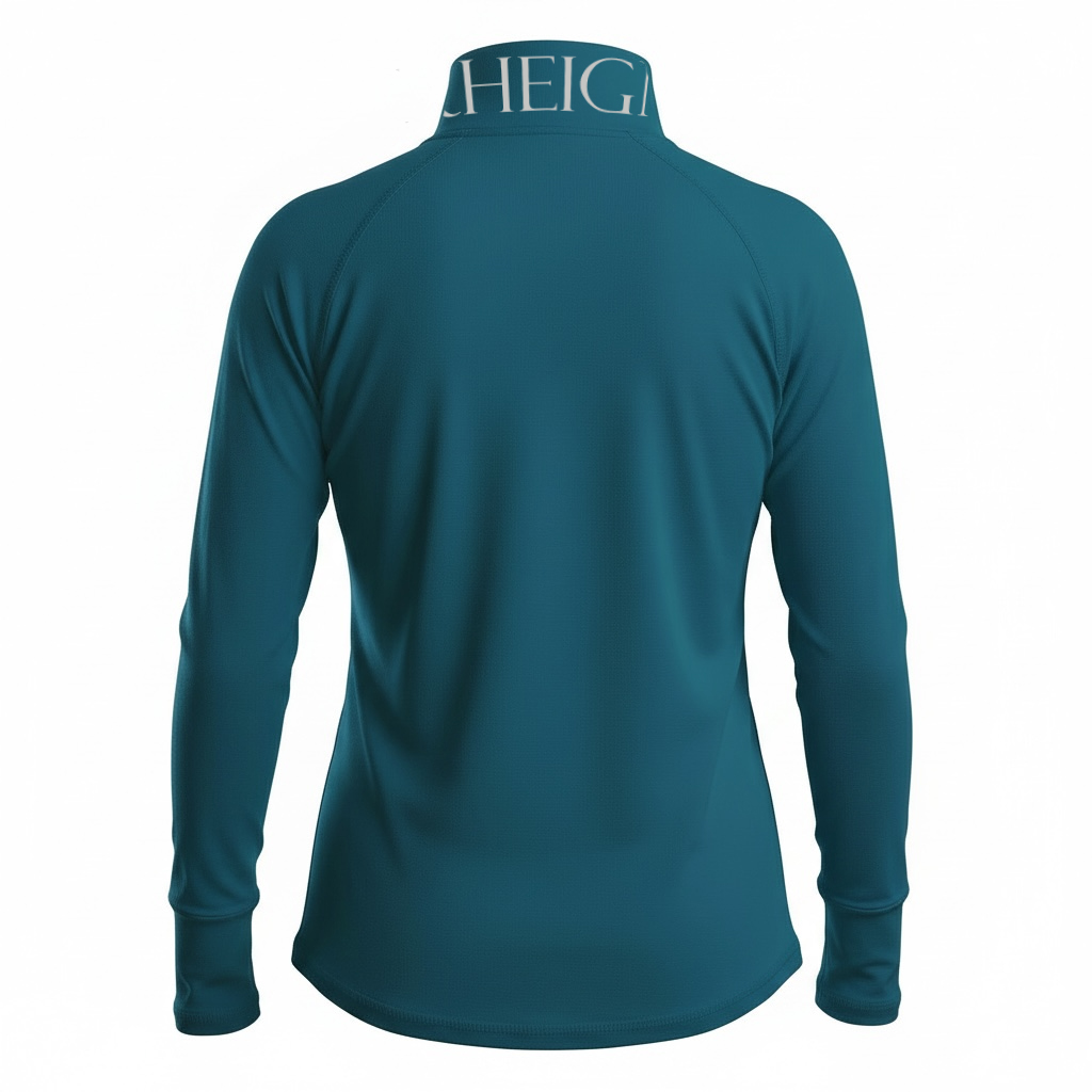 Petrol technical fabric with a silver Rheign logo on the collar.